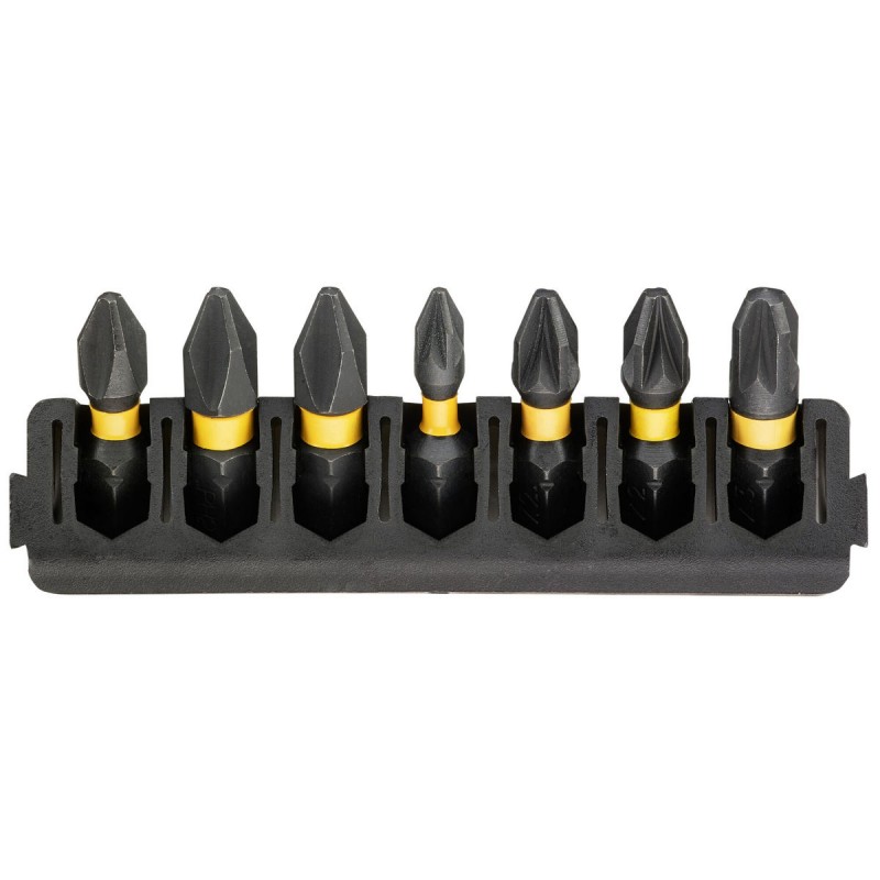 Barrette de 7 embouts de vissage Phillips/Pozidriv impact-torsion 25 mm : PH1, PH2 (x2), PZ1, PZ2 (x2), PZ3