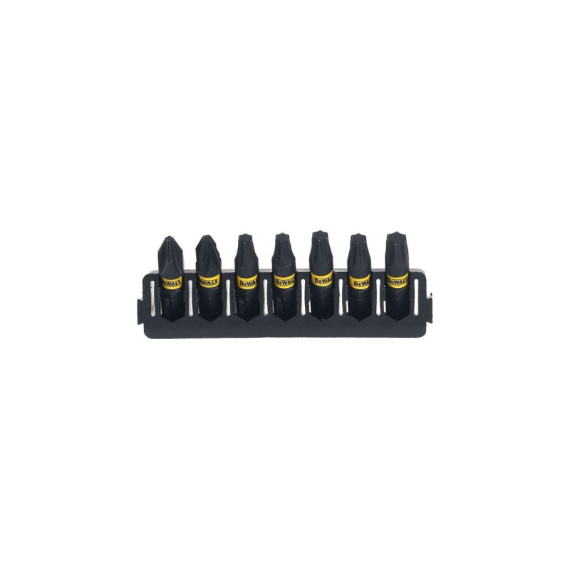 Barrette de 7 embouts de vissage Phillips/Pozidriv/Torx impact-torsion 25 mm : PH2, PZ2, T20 (x2), T25 (x2), T30
