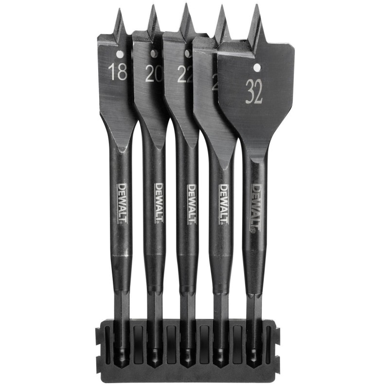 Barrette de 5 mèches à bois plates : Ø 18 mm, 20 mm, 22 mm, 25 mm, 32 mm