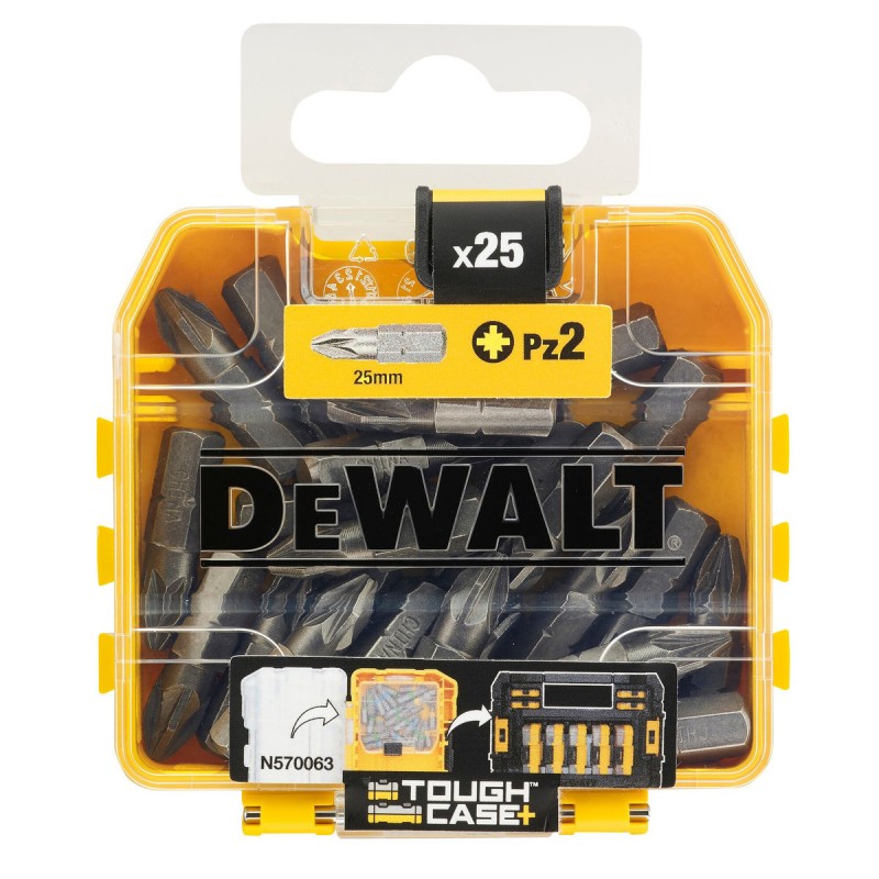Pointe de l'embout optimisée pour plus de précision Tête de l'embout conçue pour éviter les dérapages pendant le vissage Rangement flexible - le système de rangement est compatible avec les petits, moyens et grand coffrets, ainsi qu'avec le boitier TSTAK pour Coffrets TOUGHCASE Compatible TSTAK pour garder tous vos coffrets d'accessoires au même endroit Le coffret contient : 25 embouts de vissage Pz2 25mm Accessoires indispensables pour votre perceuse visseuse DEWALT