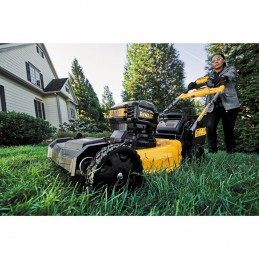Fonctionne avec 2 batteries DEWALT XR 18V ou 2 batteries XR FLEXVOLT 54V pour plus d’autonomie - Performante : moteur brushless, roues motorisées et grande largeur de coupe de 53 cm pour réduire le nombre de passages pour couvrir une zone - 6 hauteurs de coupe réglables par levier centralisé (31, 43, 54, 65,76, 87 et 99 mm) - 3 modes d’évacuation de l’herbe : bac de collecte 55L, sortie sur le côté, fonction mulching - Poignée ajustable selon 2 hauteurs pour plus de confort pendant la tonte - Poignée repliable pour un transport facile et un stockage vertical - Roues en caoutchouc résistantes compactes -