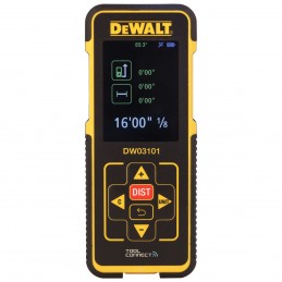 Plage de mesure jusqu'à 100 m et sur cette distance, la déviation maximale est de 3 mm - Rétro-éclairage automatique de l'écran 3 lignes pour un affichage parfaitement lisible - Une touche par fonction : mesure de longueurs, calcul de superficies et calcul de volumes. Possibilité d'addition et de soustraction. Affichage métrique ou anglais des résultats - Boussole d'inclinaison, peut être utilisé comme niveau digital - Fonction Pythagore - Possibilité de mesure continue permettant les applications d'aménagement - Calcul de surface triangulaire - Garde en mémoire les 5 dernières mesures - Base rectangulaire plate assurant la stabilité lorsque l'appareil est utilisé en position stationnaire - Télémètre laser conçu pour résister aux conditions d'utilisation extrêmes sur chantier - Précision assurée grâce aux touches explicites de grande dimension - IP54 - Protection contre l'eau et la poussière - Polyvalence et précision des mesures dans les coins et les mesures verticales - Livré avec deux piles AAA, une dragonne et un étui de rangement pouvant être fixé à la ceinture -