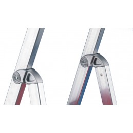 Escabeau professionnel Marea 5 marches aluminium. Charnières d'ouverture en moulage sous pression d'aluminium rendent la structure stable et rigide. Bac porte outil, vis et crochet porte-seau. Poignée de prise pour la montée.