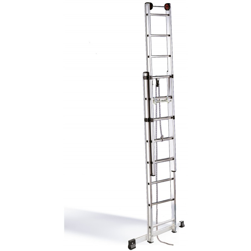 Echelle à coulisse Euro2F- 2x16 marches. Avec roues et poulie de renvoie de la corde