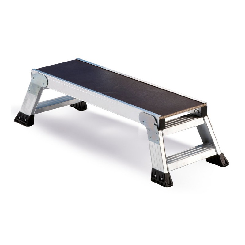 Plateforme aluminium UP&DOWN 30cm. Repliable avec charnière et verrouillage automatique de sécurité. Surface en bois antidérapant résistant aux intempéries. Pied antidérapant caoutchouc.