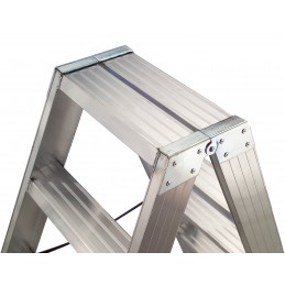 Escabeau double accès 5 marches. Marches antidérapantes. Barre de sécurité et charnière de verrouillage. Patins antidérapant caoutchouc.