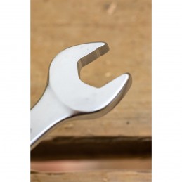 12 clés mixtes FatMax : 8 – 9 – 10 – 11 – 12 – 13 – 14 – 15 – 16 – 17 – 18 – 19 mm - Fourche orientée à 15°- Système « anti slip » sur la fourche - Améliore l’adhérence de la fourche sur la tête de vis - Prise de l’écrou sur 3 points - Œil orienté à 15° pour les accès de côté -Finition chrome mat pour une meilleure résistance à la corrosion - Etui compact pour rangement/visualisation facile des clés