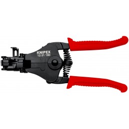 Pince à dénuder 2 couteaux de forme 0,5-0,75/1/1,5/2,5/4/6mm² - 180mm - Noire laqué - Grâce à la forme des lames affûtées avec précision, le conducteur n’est pas endommagé - Les mâchoires de serrage maintiennent le fil lors du dénudage - SC
