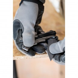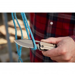 Lame en acier inoxydable de 80 mm avec bords droits et dentelés - Ergot pour faciliter l’ouverture - Emplacement doigt pour éviter les glissements et mettre plus de force - Clip ceinture - Poignée ergonomique étroite et légère en aluminium - Lame permettant de fermer le couteau et de bloquer la position ouverte -« Garde-fou » pour bloquer le glissement du doigt vers la lame - Compact