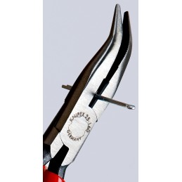 Pince à becs demi-ronds 160mm coudés 40° - Tranchant (61HRC) - Gainage PVC - Prise et coupe de précision - Mâchoires demi-rondes, longues et effilées - Intérieur des mâchoires strié - Avec tranchants pour fils doux, mi-durs et durs - SC