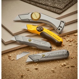 Couteau métallique laqué et strié - Système interlock de blocage de la lame pour une plus grande sécurité pendant la coupe - Réservoir de lames intégré