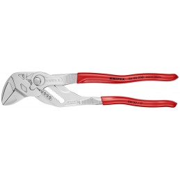 Pince-clé 250mm - Gainage PVC - Chromée - Ouverture 52mm - Mâchoires lisses ménageant les écrous - Pince et clé à la fois - Réglage rapide par simple pression du bouton - Serrage et desserrage rapide selon principe du cliquet - SC