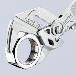 Gainage PVC - Chromée - Ouverture 52mm - Mâchoires lisses ménageant les écrous - Pince et clé à la fois - Réglage rapide par simple pression du bouton - Serrage et desserrage rapide selon principe du cliquet