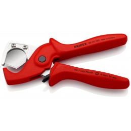 Pour la coupe de tubes en plastique à bords fins (par ex. tubes en plastique blindés) et tuyaux, même doublés de tissu, en plastique ou caoutchouc d'un diamètre extérieur max. de 25 mm. Ne convient pas pour couper les câbles. Avec ressort d'ouverture et système de verrouillage. Couteaux: acier à outils spécial, trempé à l’huile, interchangeables. Corps de l’outil: plastique, renforcé de fibres de verre.