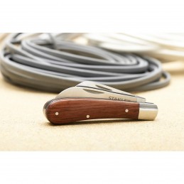 Une lame type serpette 70 mm pour dénuder + une lame droite 70 mm pour couper ou effiler - Lames en acier au carbone Dureté 60 HRC - 3 positions : fermé – 90 ° - 180 ° - Manche bois 100 mm