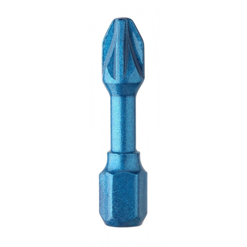 L'embout blue shock est spécialement étudié pour l'utilisation sur visseuse à choc et visseuse de forte puissance. La zone shock absorber permet de résister au couple de serrage élevé de ces machines.