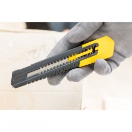 Corps assemblé en deux parties pour un changement rapide de la lame - Bouton-poussoir multi positions pour un usage rapide - Lame inclus dans le corps du cutter pour + de sécurité