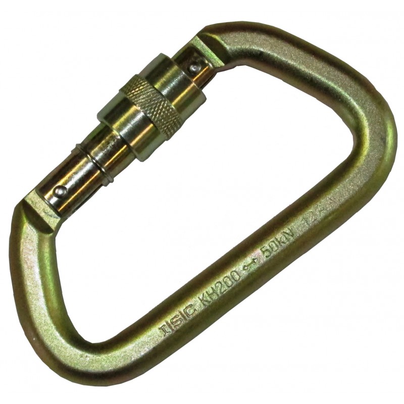 Un mousqueton en métal multi-usages en acier plaqué au zinc et aluminium anodisé de haute qualité avec mécanisme de blocage vissé.