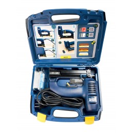 Agrafeuse-cloueuse électrique haute performance pour les agrafes en fil fin et les pointes. Livrée en coffret comprenant des agrafes et des pointes.