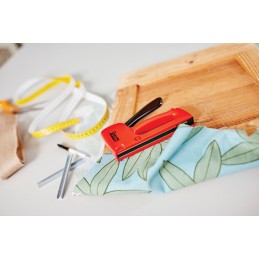 Agrafeuse manuelle R53E pour les loisirs et le bricolage. Poignée ergonomique. Convient au décor à la maison, le textile, matelassage et réparations légères.