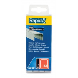 Longueur des Agrafes 10 mm. Galvanisées. Pointes des Agrafes affûtées. 5000 pièces, conditionnées par boîte plastique. Pour R13, R23, R30, R33, R83, ALU610, ALU913, R19, Eco Tacker, M10Y.