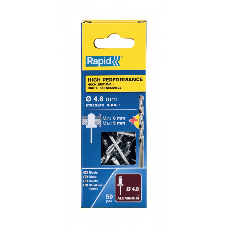 50 Rivets Haute performance Rapid Ø4.8x12mm. Foret inclus.