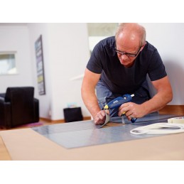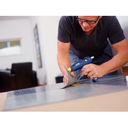 Pistolet à colle avec cordon amovible et buse interchangeable.