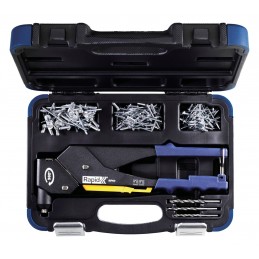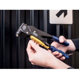Pince à riveter tête pivotante équipée de la buse révolutionnaire Multi pour une efficacité encore plus grande. Utilise des rivets 3.2, 4.0 et 4.8 aluminium. Livrée en coffret avec rivets et forêts de perçage.