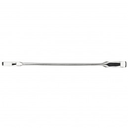 Fourche orientée à 15° - Œil 12 pans orienté à 15° pour les accès de côté - Manche ergonomique pour un plus grand confort et permettant un serrage plus puissant - Mécanisme à cliquet pour ne pas avoir à repositionner la clé et gagner du temps-72 dents pour un angle de reprise 5 ° pour travailler dans zone exigüe - Finition Chromée contre la corrosion - Acier forgé à froid