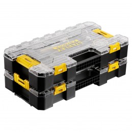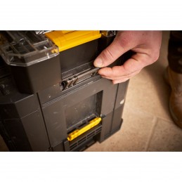 1 Mesure Blade Armor 5 m x 32 mm FATMAX-1 Cutter 18 mm à cartouche FATMAX-1 Pince multiprise à verrouillage 250 mm FATMAX-1 Tournevis porte-embouts à cliquet-40 Embouts de vissage : Pozidriv : PZ1x2 – PZ2x2 – PZ3 - Philipps : PH1x2– PH2x2 – PH3 – Hexagonal : 1.5 – 2 – 2.5 – 3 – 4 – 5 – 5.5 – 6 – 7 – 8 – Tampertorx : TT10 – TT15x2 – TT20 – TT20 – TT25x2 – TT27 – TT30 – TT40 – Fente : 3 – 4 – 4.5 – 5 – 5.5 – 6 – 6.5x2 – 7 – 8-Connexion facile avec les boites PROSTACK et coffrets STAKBOX L et M-Identification rapide du contenu avec le couvercle transparent-Transport facile à l’aide de la poignée-Possibilité de transporter plusieurs coffrets grâce aux attaches