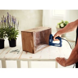 640 agrafes en fil plat d'acier haute performance à coupe de précision. Le fil plat offre une surface de maintien du matériau plus grande, il est idéal pour le plastique fin, l'isolation, etc.