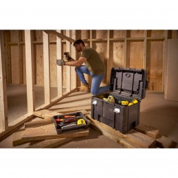 Larges attaches métalliques - Attaches latérales avec pignon métal pour adapter d’autres modules PRO-STACK™ - Top Organiseur intégré - Longue poignée ergonomique pliable - Large volume de rangement 23 litres – 30 Kg-Etiquette personnalisée