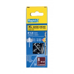 Plage de serrage : 9-12m - Ces rivets en aluminium haute performance possèdent une tête plus large, plus plate. Cette caractéristique augmente la résistance à l'arrachement et offre un meilleur maintien des matériaux plus souples comme le cuir, le caoutchouc et le plastique sur les matériaux plus dur - Tête de rivet en aluminium, tige de rivet en acier - Pour RP10, RP40, RP60, RP100 - Foret inclus