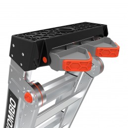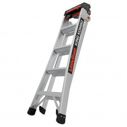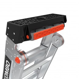 Le King Kombo 4 marches offre une hauteur maximale d'accès de 2,1m en escabeau et de 3m en extension. 3 en 1, à la fois échelle d’appui, escabeau et échelle en extension. Équipé du Wallpad rotatif pour prendre appuis sur les murs