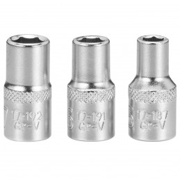 Jeu de 3 douilles 1/4" 6 pans 5-6-7 mm- Profil MAXIDRIVE pour maximiser le contact entre la douille et l’écrou/boulon - Moletage (knurling) pour une meilleure prise en main en phase d’approche - Meilleure prise avec un corps décolleté et réduction du poids pour les douilles courtes et un corps étroit pour les douilles longues - Sélection plus facile de l’outil avec le marquage de la dimension ultra lisible - Excellente résistance avec acier au chrome vanadium. Les douilles courtes et longues existent en ¼’’ de 4 à 14 mm - Les douilles courtes existent en 3/8’’ de 8 à 24 mm et pour bougie 16-21 mm - Les douilles courtes existent en 1/2’’ de 8 à 34 mm et pour bougie 16-21 mm